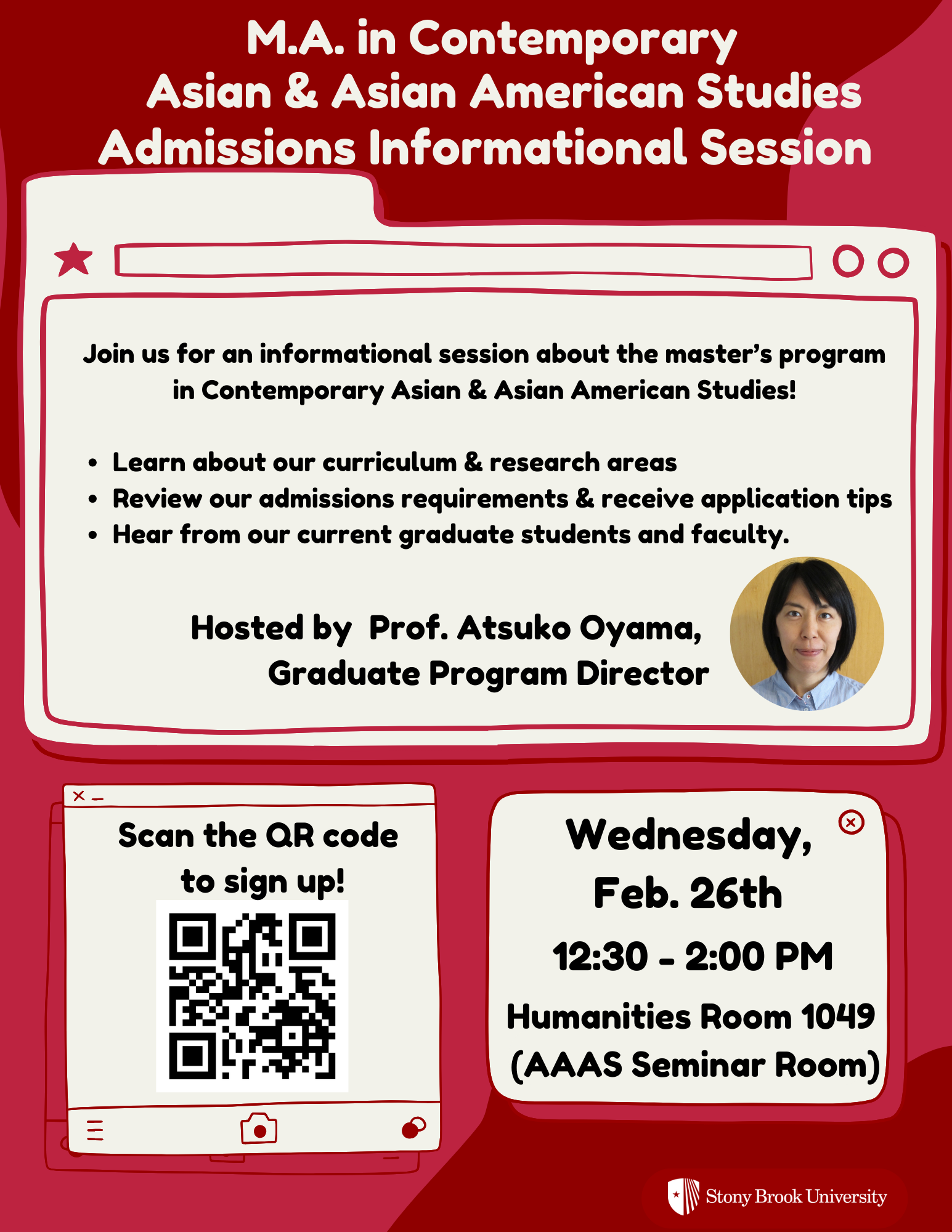 MA in Contemporary Asian & Asian American Studies Info Session, Wednesday, February 26, 2025 | 12:30 pm | Humanities 1049