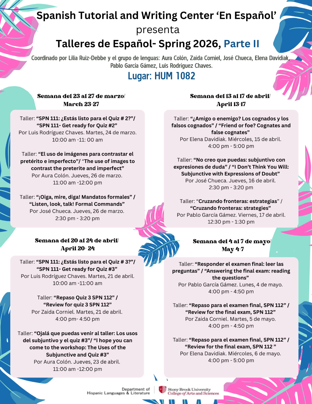 Spanish Language Wokshops for SPRING 26